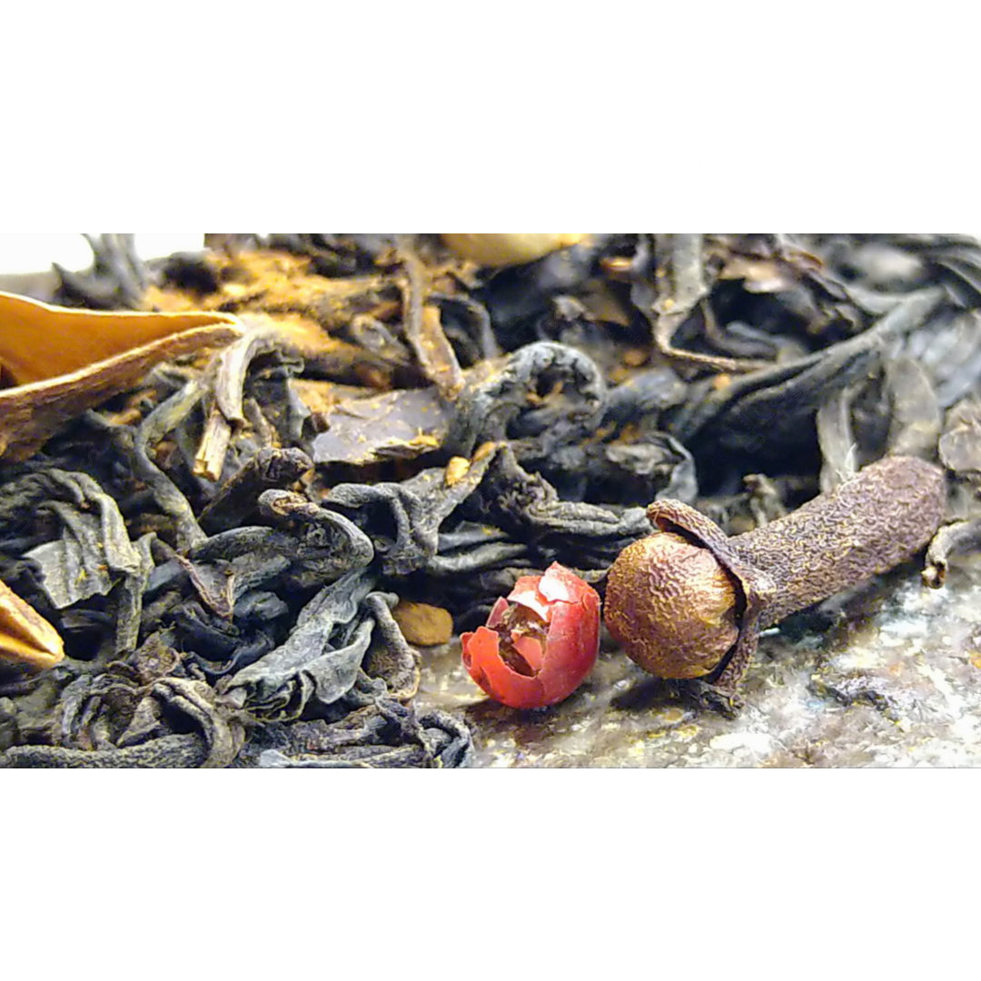 Склад: натуральні чорний та рожевий перець, гвоздика, бадьян, кардамон, фенхель, кориця та звісно основа - чистий чорний цейлонський чай - Тадж-Махал.